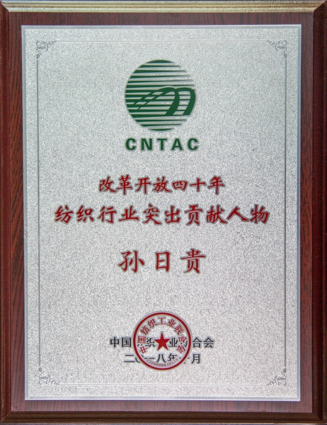 孫日貴董事長是中共山東省第七、八、九、十屆黨代表,山東省第十屆、第十一屆人大代表,先后被授予“全國勞動模范”、“全國紡織企業家創業獎”、“山東省優秀企業家”、“濰坊市功勛企業家”、“首屆濰坊慈善家”、“高密市人民勛章”等榮譽稱號。同期,孫日貴董事長入選中國家用紡織品行業協會公布的25位“改革開放40年家紡行業突出貢獻人物”。附件下載: