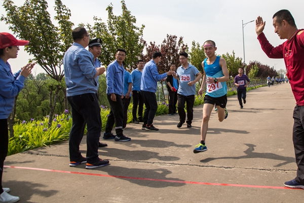 家紡二公司薛兆森以矯健的步伐率先沖過終點線,以29'39"的成績將男子組冠軍攬入手中。棉紡公司杜宜升跑出32'13"鎖定亞軍,熱電公司李永波隨后以33'10"取得季軍。